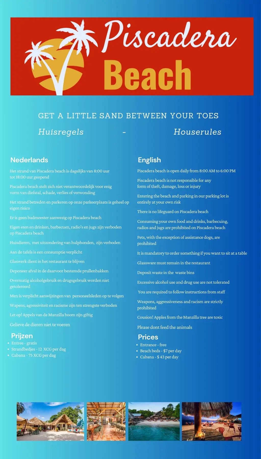 With 3 restaurants and 3 different concepts, there is something for everyone to do on Piscadera Beach. Piscadera Beach stands for serving freshly prepared dishes and quality wines, providing excellent service, but above all showing the guest the unique, local atmosphere and beautiful surroundings.
